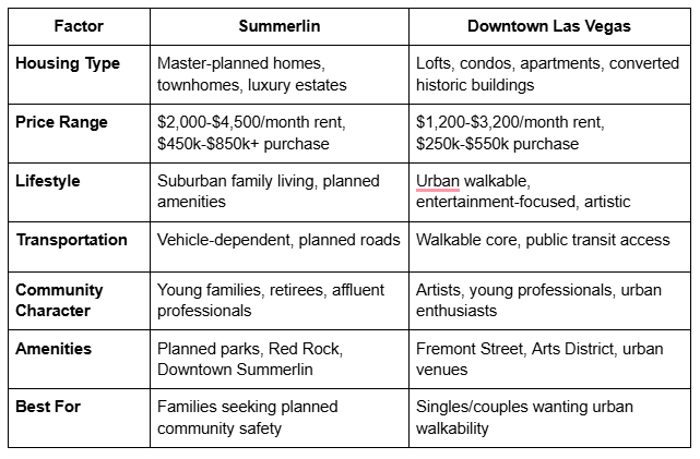 Summerlin vs Downtown Las Vegas: Complete Neighborhood Comparison Guide